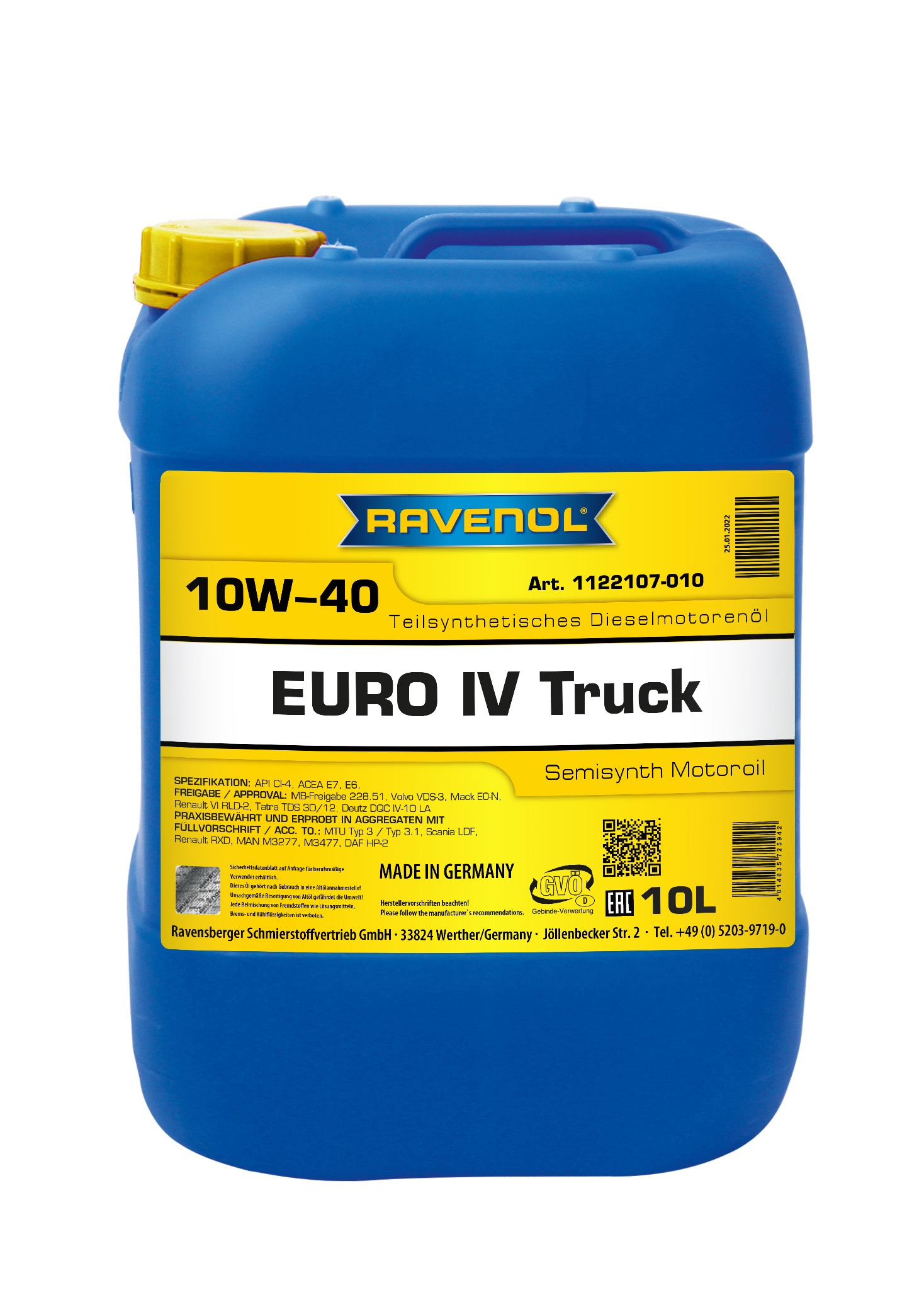 RAVENOL EURO IV Truck SAE 10W-40; 10 L 1122107-010-01-999